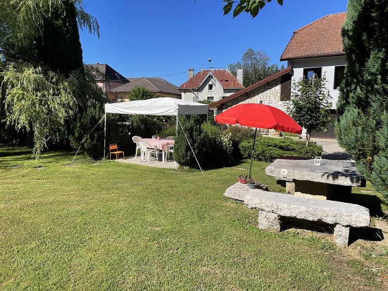Cour et jardin clos communs aux 2 autres gîtes, salon de jardin, barbecue, jeux enfants, balançoire, terrain de pétanque.