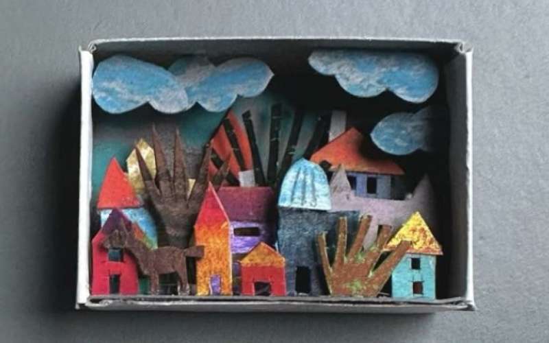 Une boîte comme un secret, un écrin pour créer un petit monde à soi à observer à travers la lucarne. Collages, dessins,