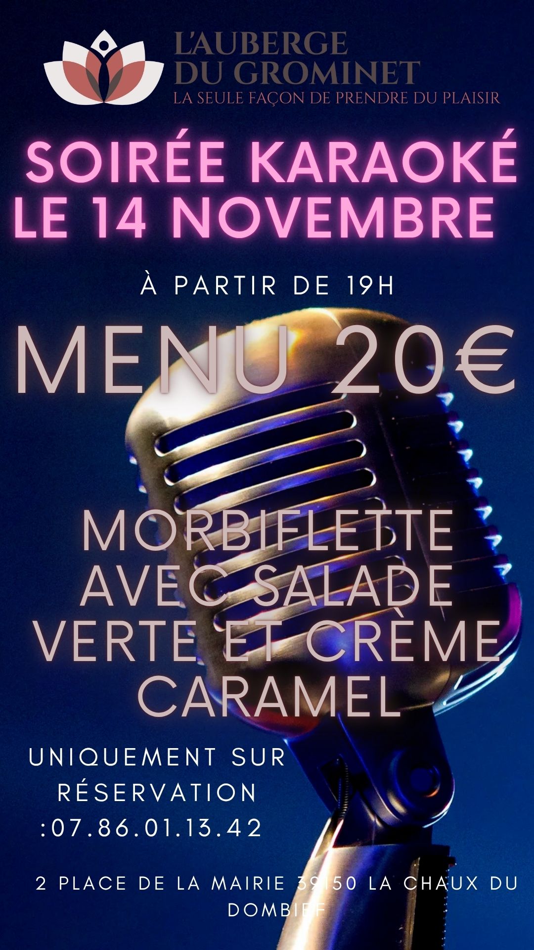 LA CHAUX-DU-DOMBIEF Concours de belote au Grominet Concours de belote à l'auberge du Grominet samedi 18 octobre 2025 à 14h00. Sur inscription : 10€/personne, à partir de 13h30. Lot pour les finalistes.Restauration à partir de 19h.Réservation conseillée
