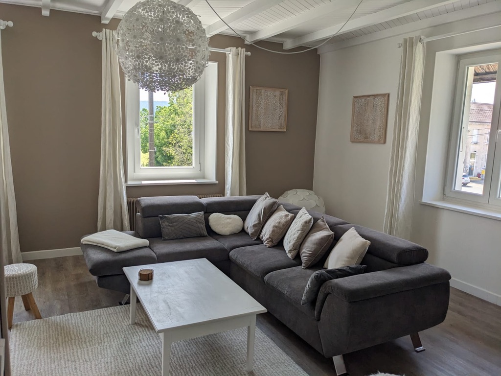 Situé dans le village de Saint Pierre dans le PNR du Haut Jura, grand appartement lumineux de 120m2, situé au premier étage d'une maison de campagne individuelle, pouvant accueillir 6 personnes. Très jolie vue dégagée sur la campagne.