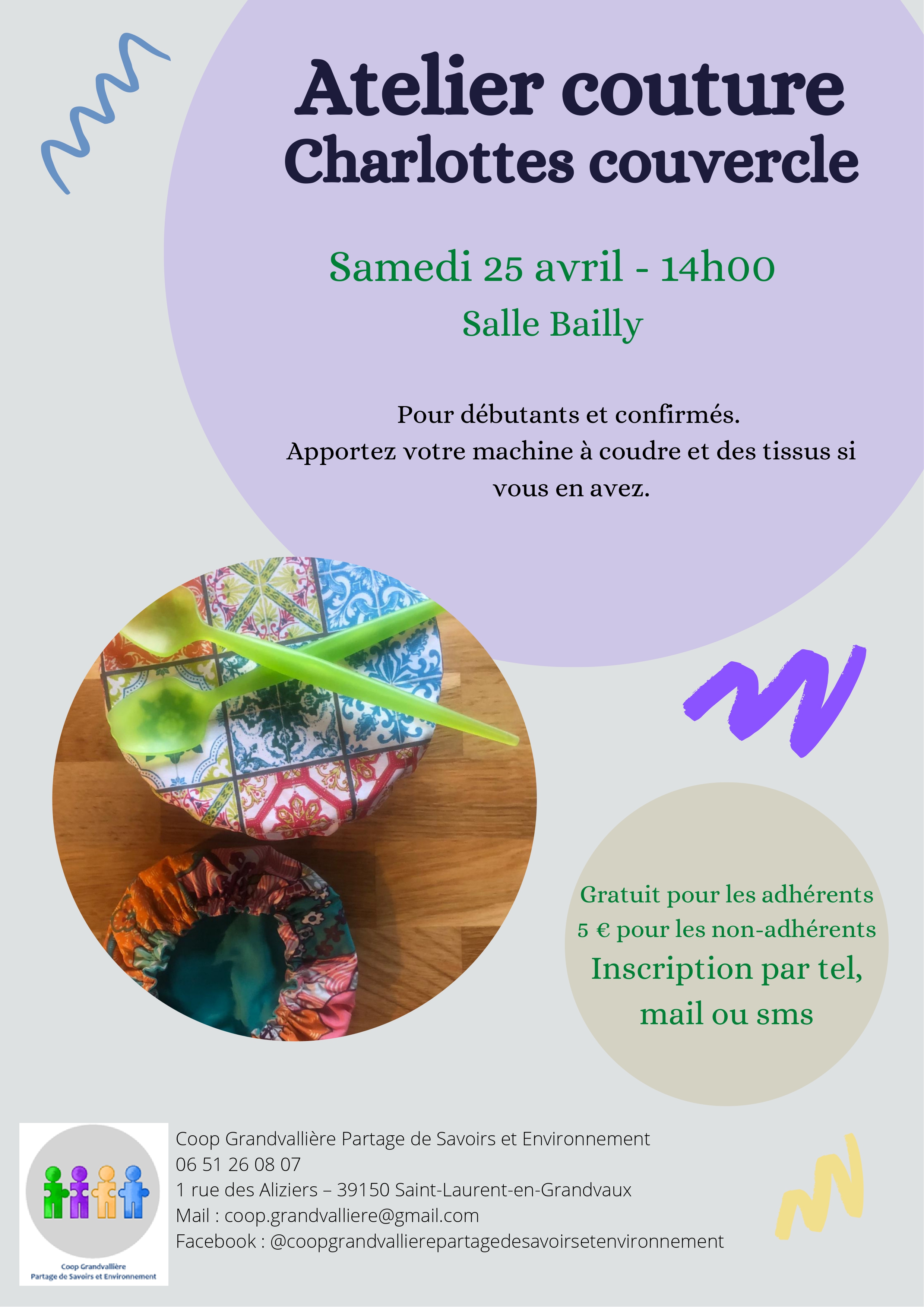 Atelier couture pour débutants et confirmés "Charlottes couvercle".