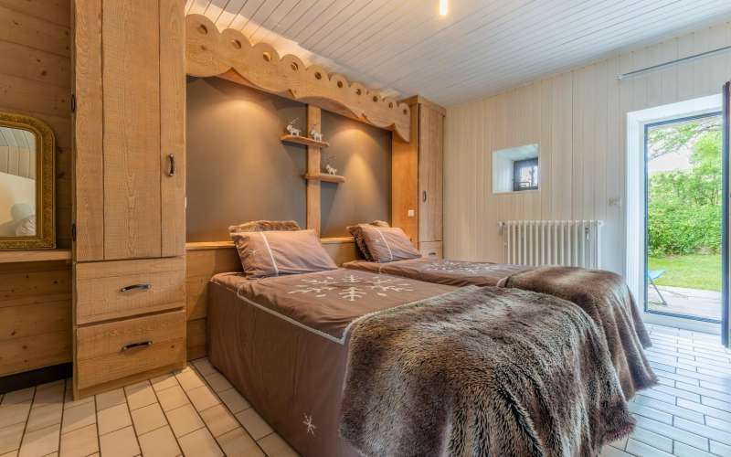 Maison mitoyenne avec au RDC : cuisine-séjour (plaques à induction), 1 chambre avec 2 lits simples, salle d'eau, avec WC indépendant.