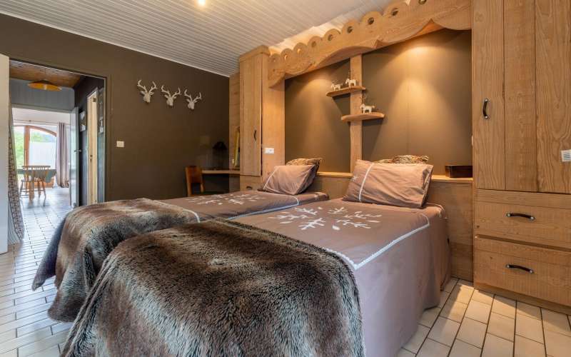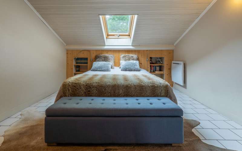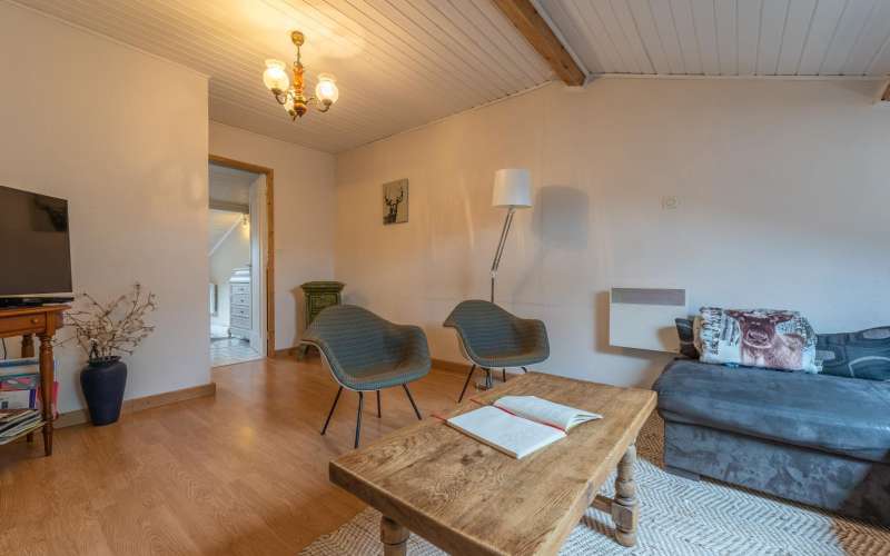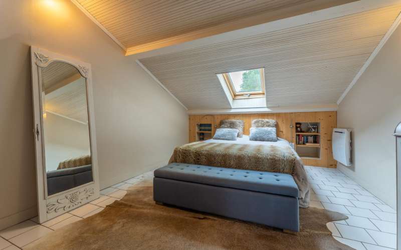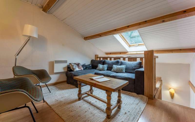 A l'étage: mezzanine avec salon, lecteur DVD, connexion internet. 1 chambre avec 1 lit double(160x200), WC indépendant.