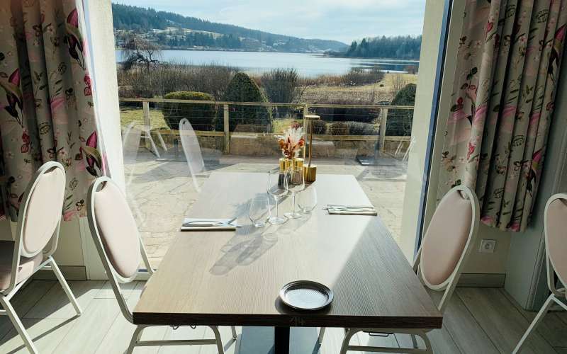 Que vous soyez avec votre moitié, en famille ou pour fêter un évènement particulier, notre grande salle modulable, jusqu'à 150 places, s'ajuste à toute demandes. Grâces à nos grandes baies vitrées, venez découvrir la vue imprenable sur le lac de l'Abbaye.