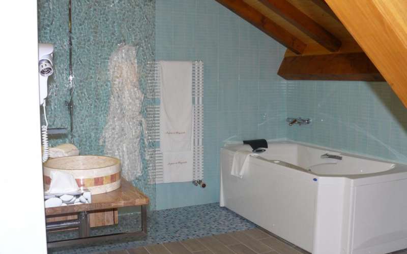 Chambre n°1 : 1 lit 2 places (160 x 200), salle de bain (baignoire balnéo) et douche à l'italienne.