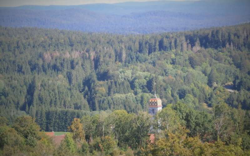 Une première place permet un moment de détente sous une "tâche" de "foyards", le sentier conduit ensuite à un premier belvédère agrémenté d'un banc de repos et de contemplation, puis un second, plus largement ouvert sur un panorama exceptionnel (avec une petite plateforme et un banc en bois massif).