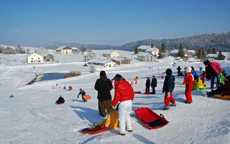 Piste de luge damée dans le hameau de Prénovel à Nanchez à côté de l'église : environ 100 m de descente.