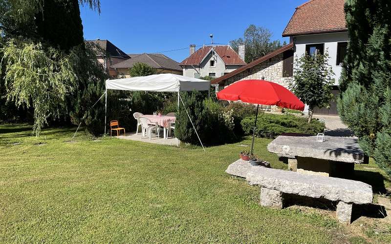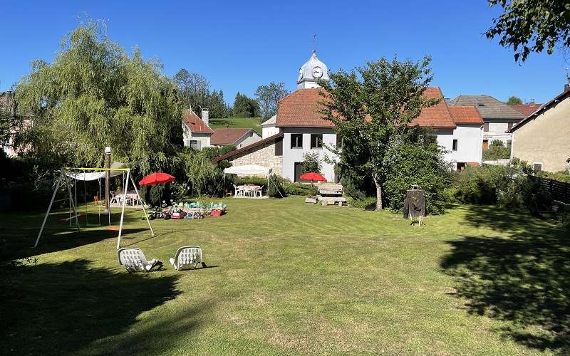 Cour et jardin clos communs aux 2 autres gîtes, salon de jardin, barbecue, jeux enfants, balançoire, terrain de pétanque.