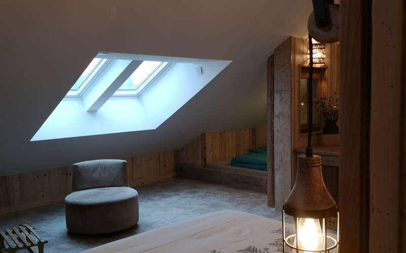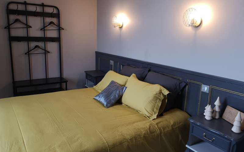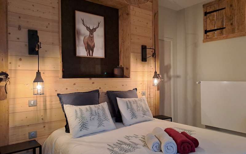 Cette grande chambre est située sous les toits pour retrouver l'ambiance de nos montagnes. Venez vous mettre au chaud dans une ambiance chaleureuse.