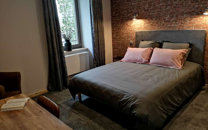 La chambre "A l'état brut" de 24m2 pour 2 personnes : Bois, brique et décoration industrielle pour construire de jolis rêves dans cette chambre confortable.