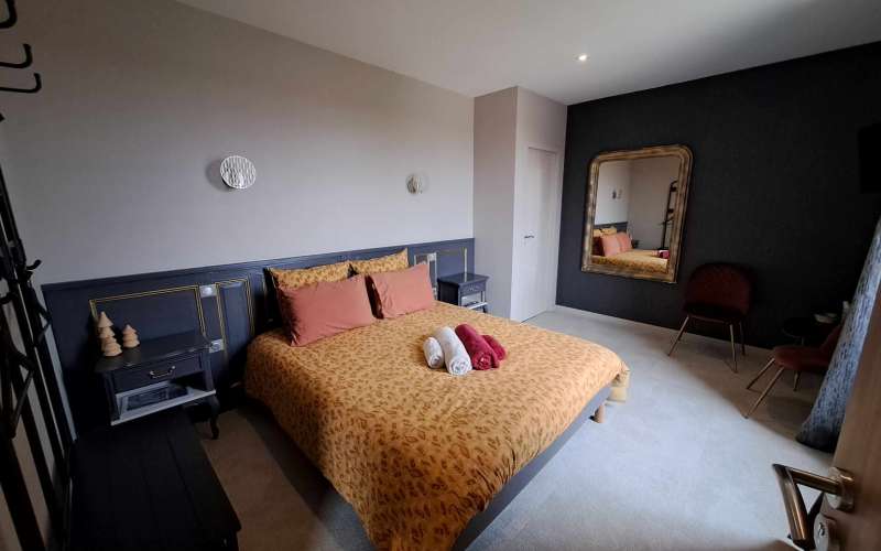 La chambre "les Ors Logés" de 24m2 pour 2 personnes est une chambre lumineuse d'or et de gris décorée. La vue est dégagée et un parfait endroit pour admirer les couchers du soleil sur le Grandvaux.