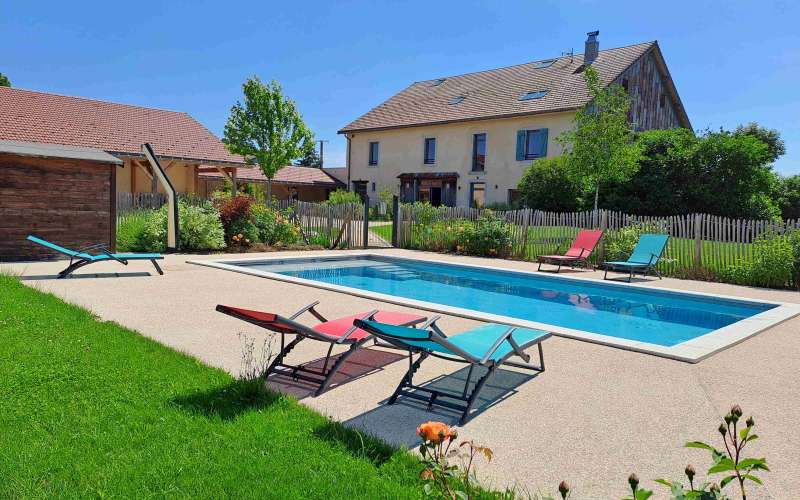 Terrasse commune, grand jardin, piscine extérieure, terrain de pétanque...De quoi passer une séjour inoubliable dans le Grandvaux !