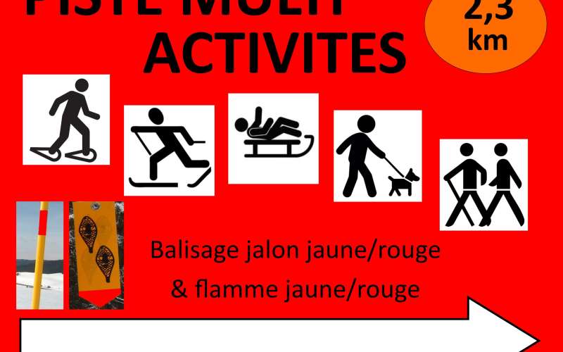 Une piste multiactivités de 2,3 km est tracée et balisée au Lac des Rouges Truites au départ du Domaine du Bugnon.