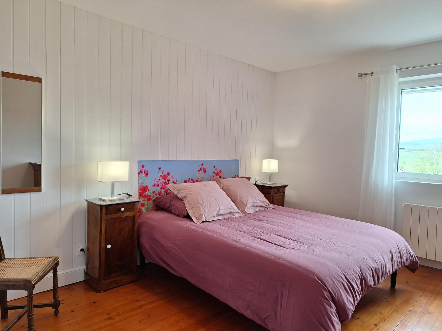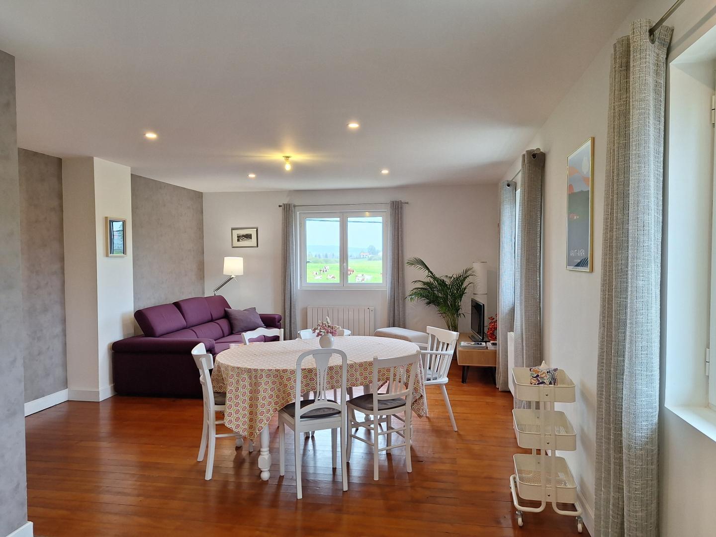 Lumineux et très calme, il surplombe l'exploitation familiale et vous offre une vue imprenable sur les chèvres, les vaches et les pâturages.