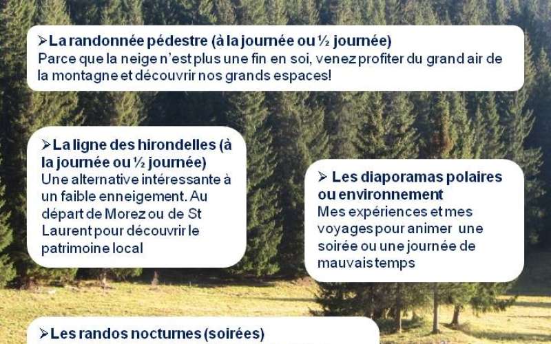 Les cordes qu’il détient à son arc sont nombreuses: de la randonnée pédestre et la raquette à neige l’hiver, en passant par l’itinérance tout confort ou en autonomie, l’apprentissage de la montagne, l’orientation ou encore l’animation et la sensibilisation à l’environnement pour les petits et les grands !