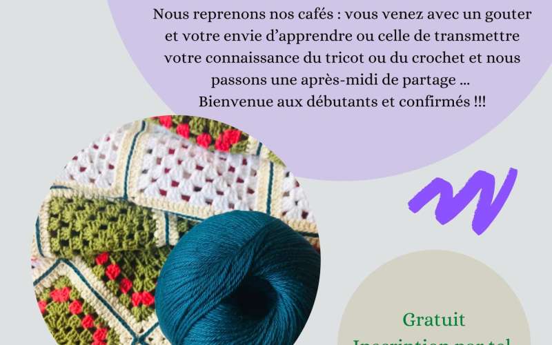 Venez avec un goûter et votre envie d'apprendre ou celle de transmettre votre connaissance du tricot ou du crochet...
