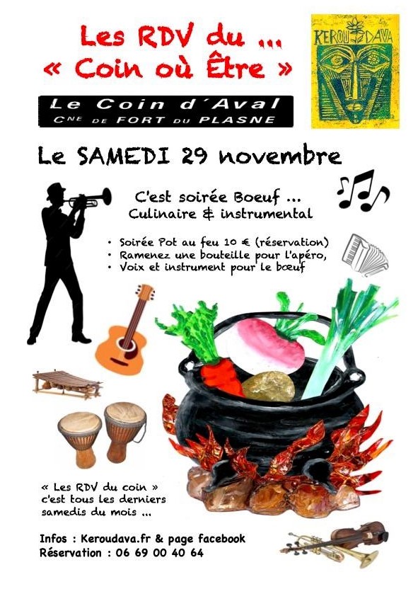 Samedi 29 novembre, au coin d'aval, c'est soirée boeuf... culinaire & instrumental !
