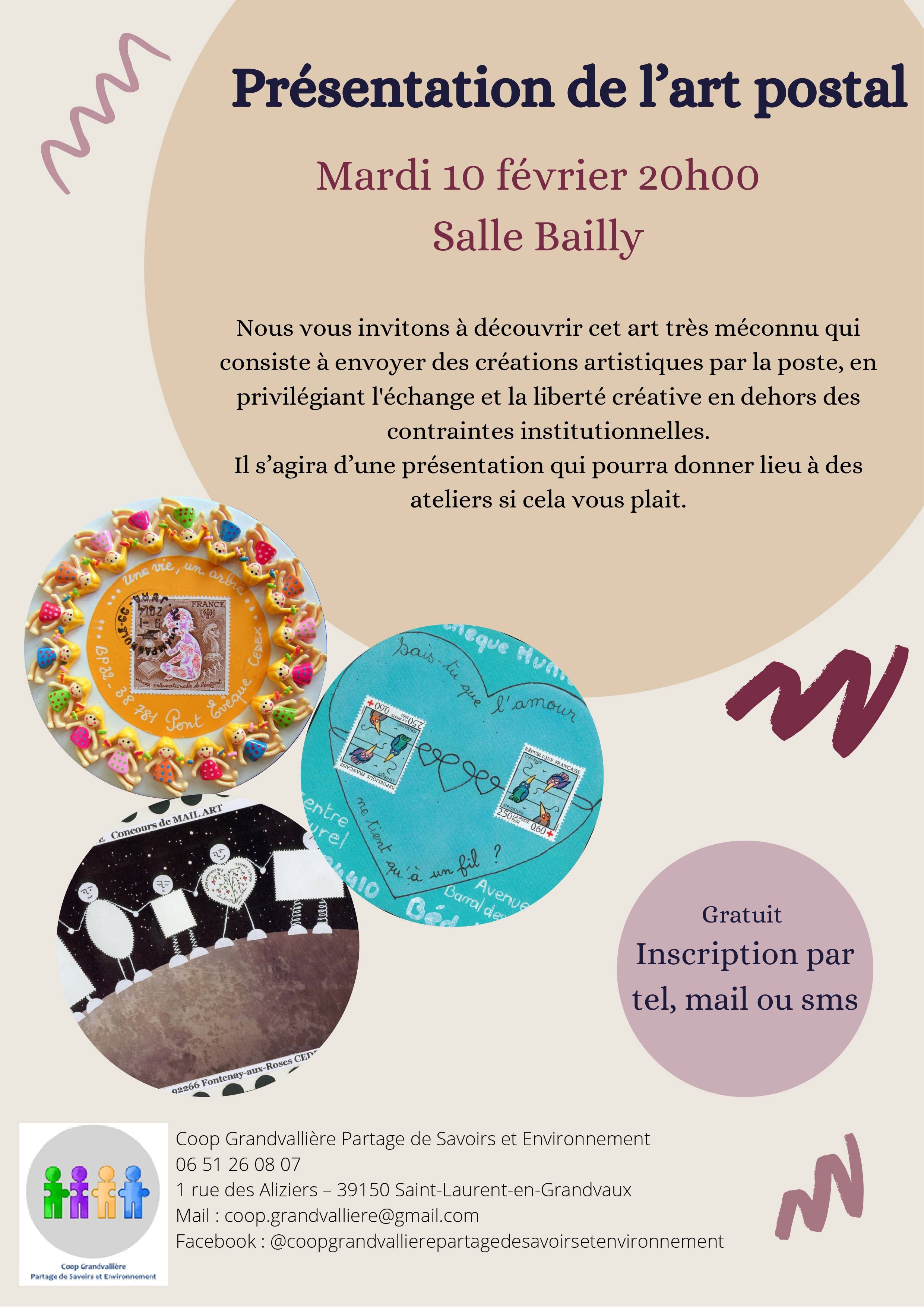 Découverte de l'art postal avec la Coop Grandvallière, mardi 10 février à 20h00.