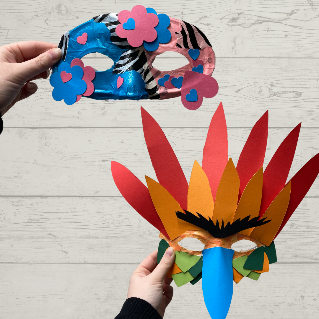 Peinture, paillettes, plumes… Laisse parler ton imagination pour créer un masque de carnaval coloré et original !
