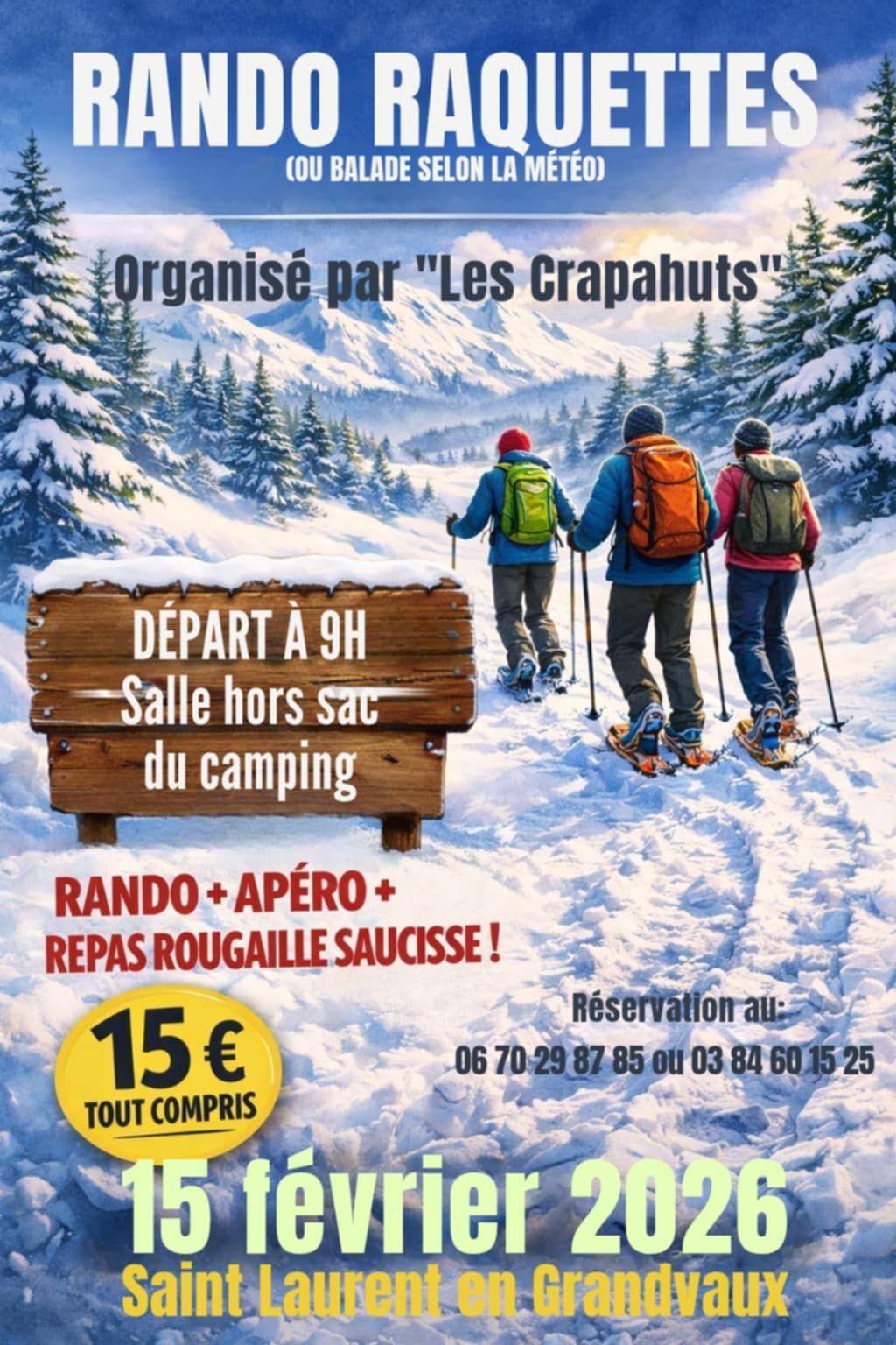 Réservation avant le vendredi 13/02/26 : 06 70 29 87 85 ou 03 84 60 15 25.