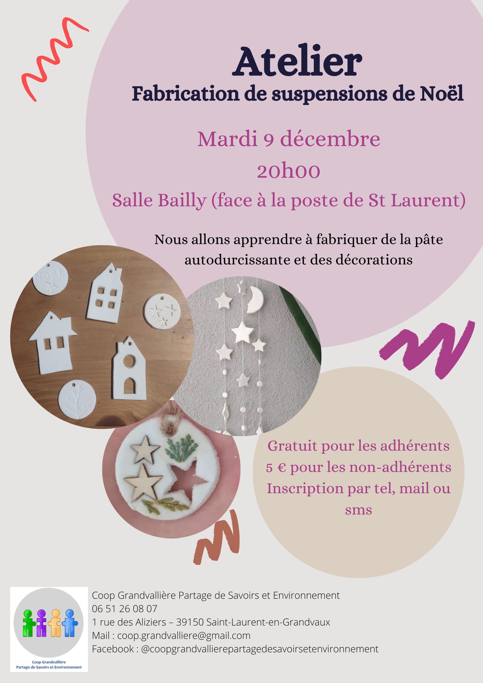 Ateliers "Décorations de fête en pâte autodurcissante" organisé par la Coop Grandvallière Partage de Savoirs et Environnement.
