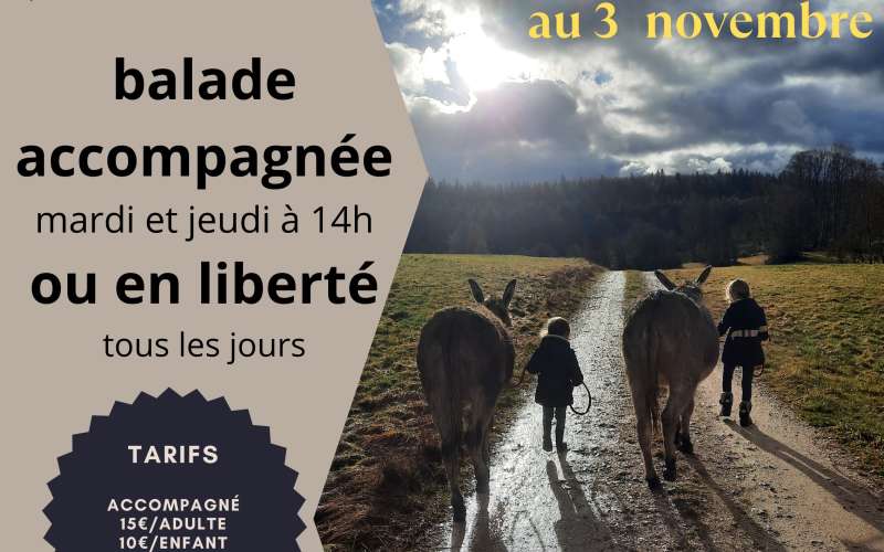 Balade accompagnée avec les ânes les mardis et jeudis à 14h avec la Flanerie d'Audrey.