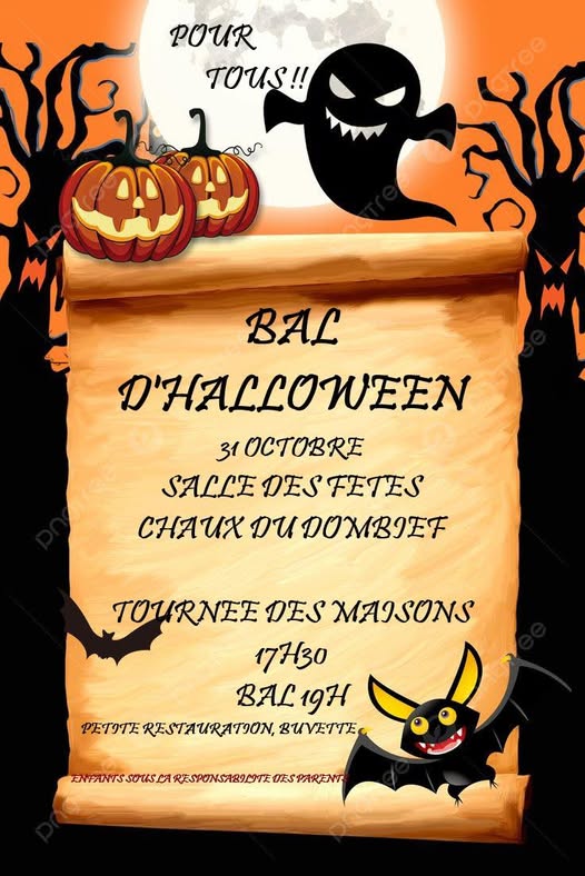 Dès 19h00, bal d'Halloween ouvert à tous.