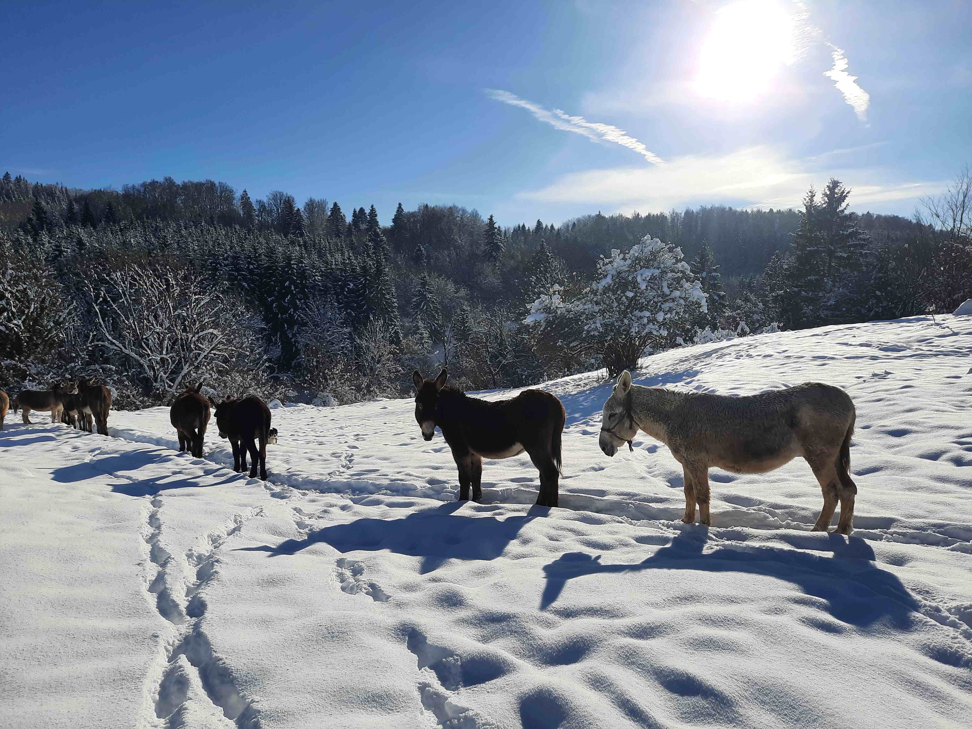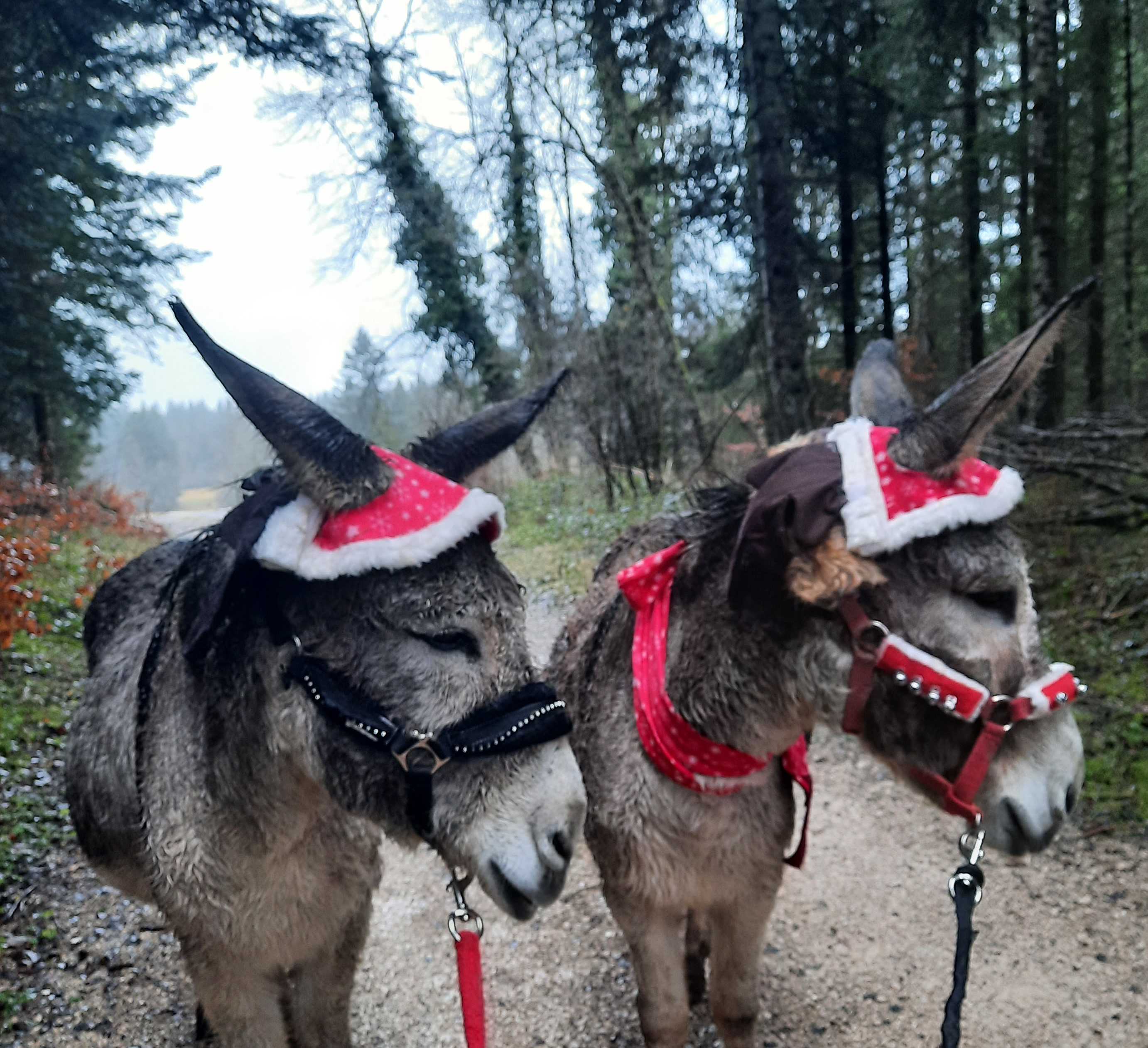 balade accompagnée au pas de l'âne à Fort-du-PLasne avec la Flanerie d'Audrey pendant les vacances de Noël.