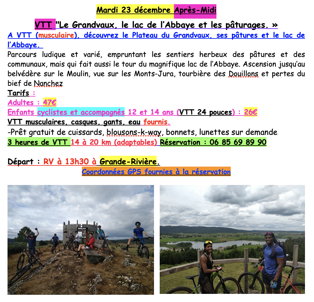 Parcours VTT ludique et varié, empruntant les sentiers herbeux des pâtures et des communaux, mais qui fait aussi le tour du magnifique lac de l’Abbaye. Ascension jusqu'au belvédère sur le Moulin, vers le sapin président, vue sur les Monts Jura, tourbières des Douillons, pertes du bief de Nanchez.