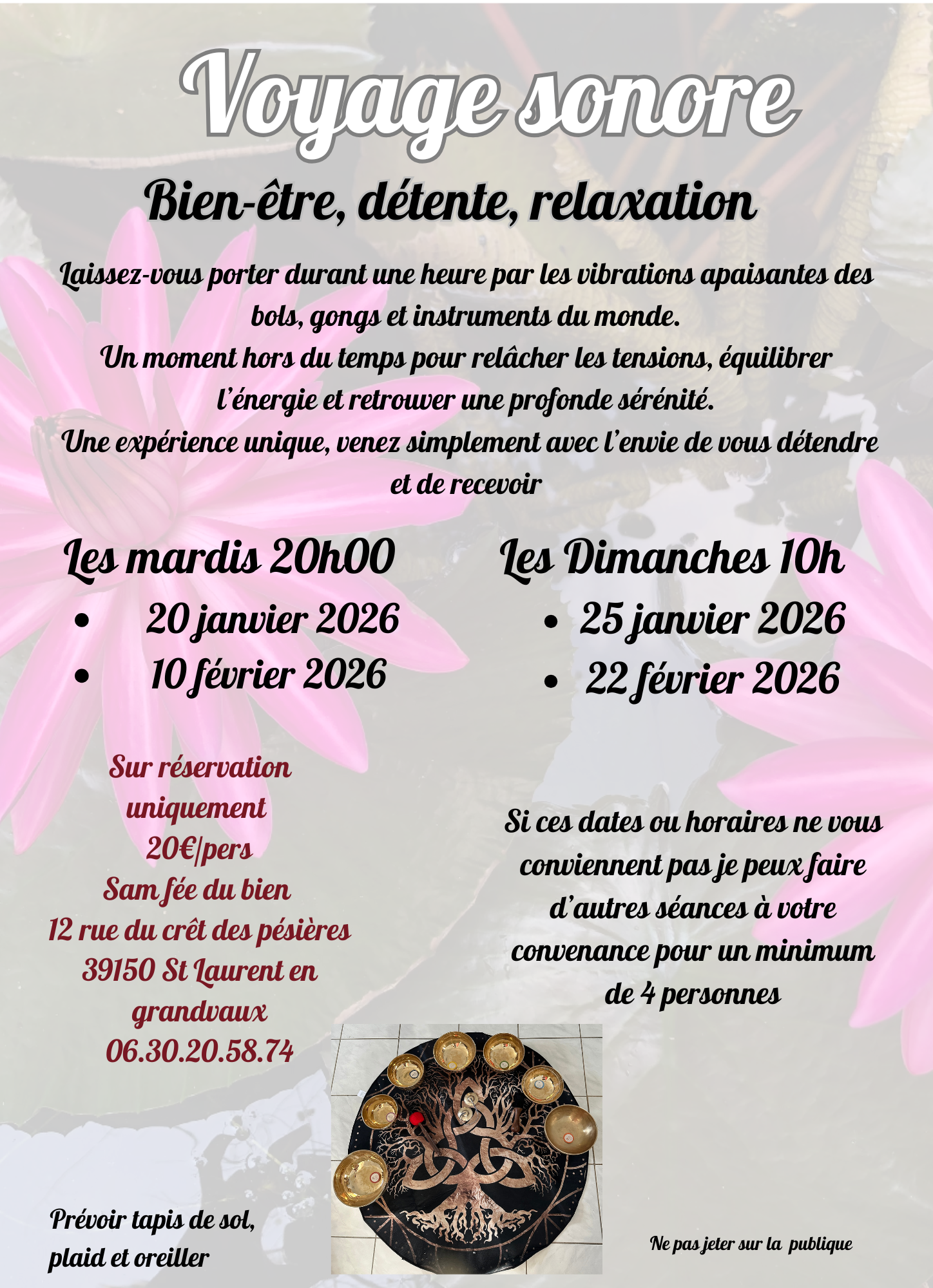 Laissez-vous porter durant une heure par les vibrations apaisantes des bols, gongs et instruments du monde.