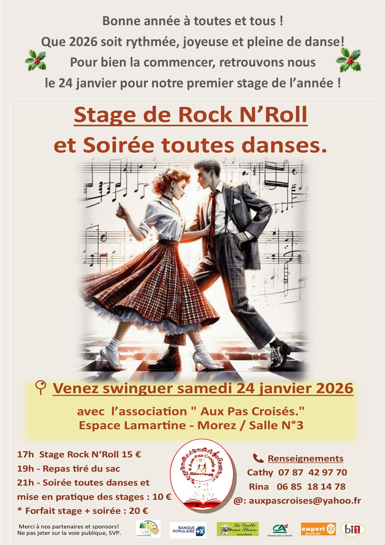 Stage de Rock N'Roll suivi d'un repas canadien et d'une soirée toutes danses pour mise en pratique des stages.