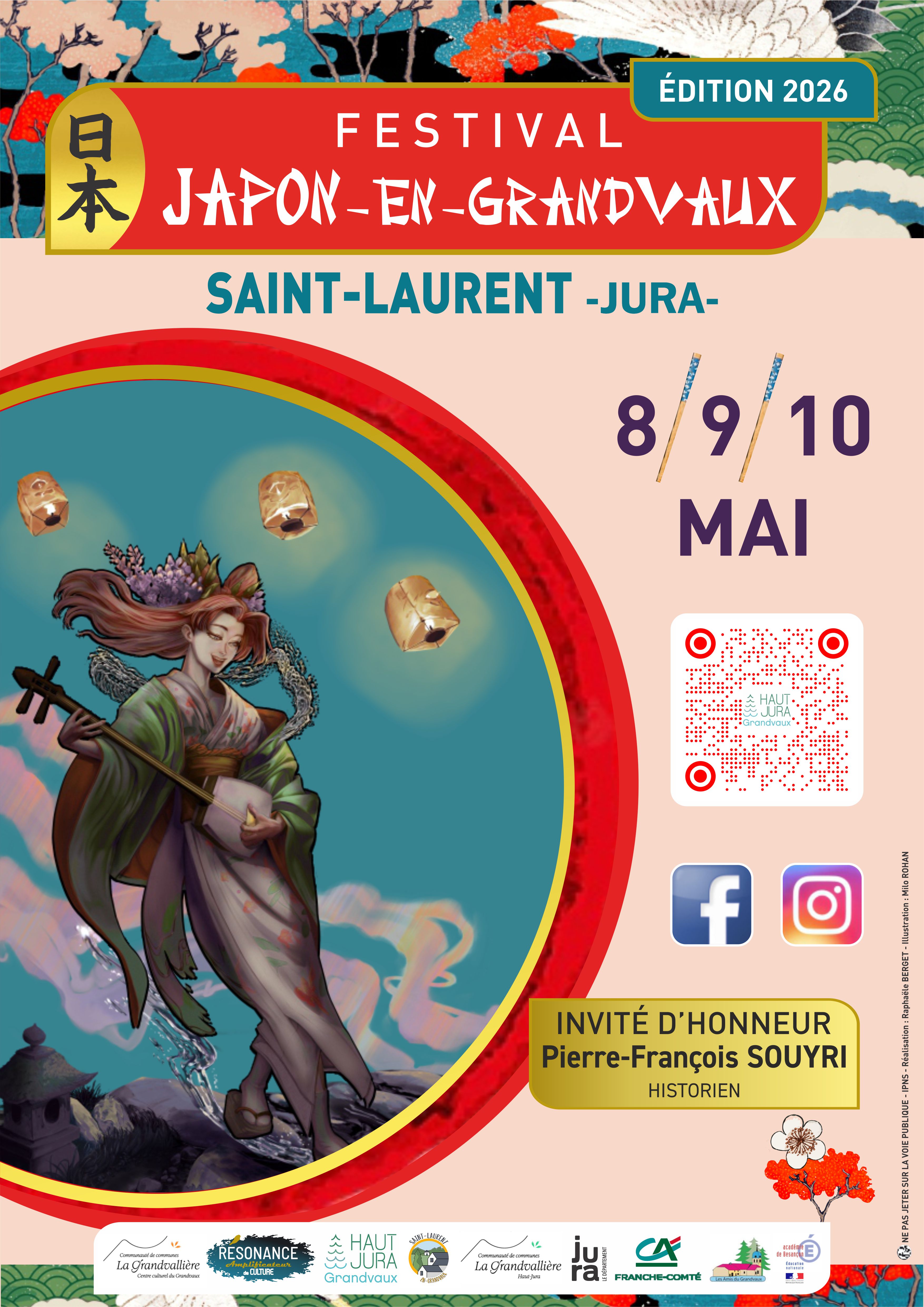 Le festival triennal Japon-en-Grandvaux est de retour en 2026 ! Avec une programmation encore plus riche, variée et attrayante que les précédentes éditions. Et un invité d’honneur grand érudit du Japon : Pierre-François Souyri, historien, ancien professeur d’universités en France, en Suisse et au Japon, et qui a notamment publié : Nouvelle Histoire du Japon (Perrin, réédition 2023), Histoire des samouraïs (Flammarion, réédition 2023) et Histoire des ninjas (Tallandier, 2024).