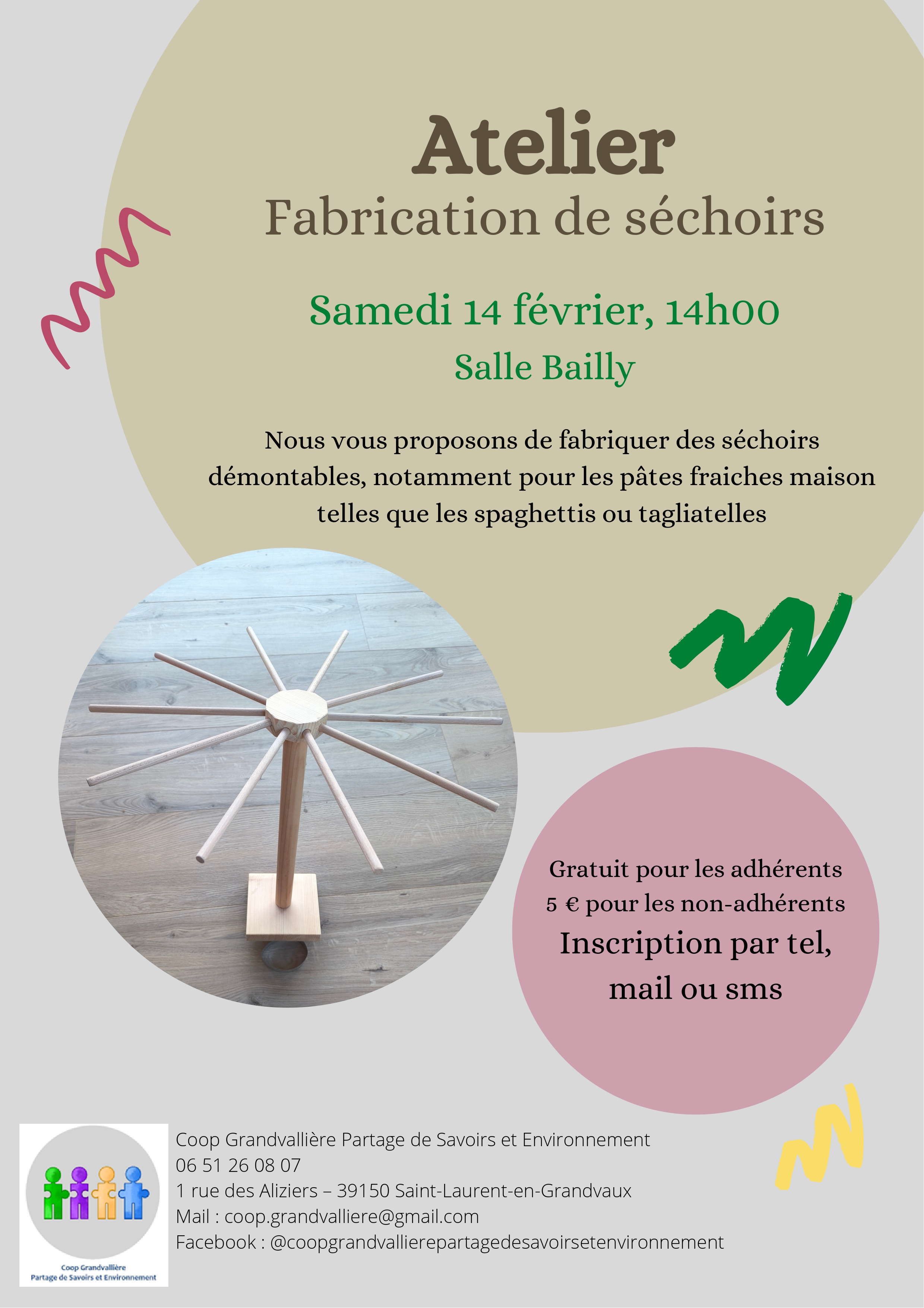 Atelier "Fabrication de séchoirs" samedi 14 février à 14h00.
