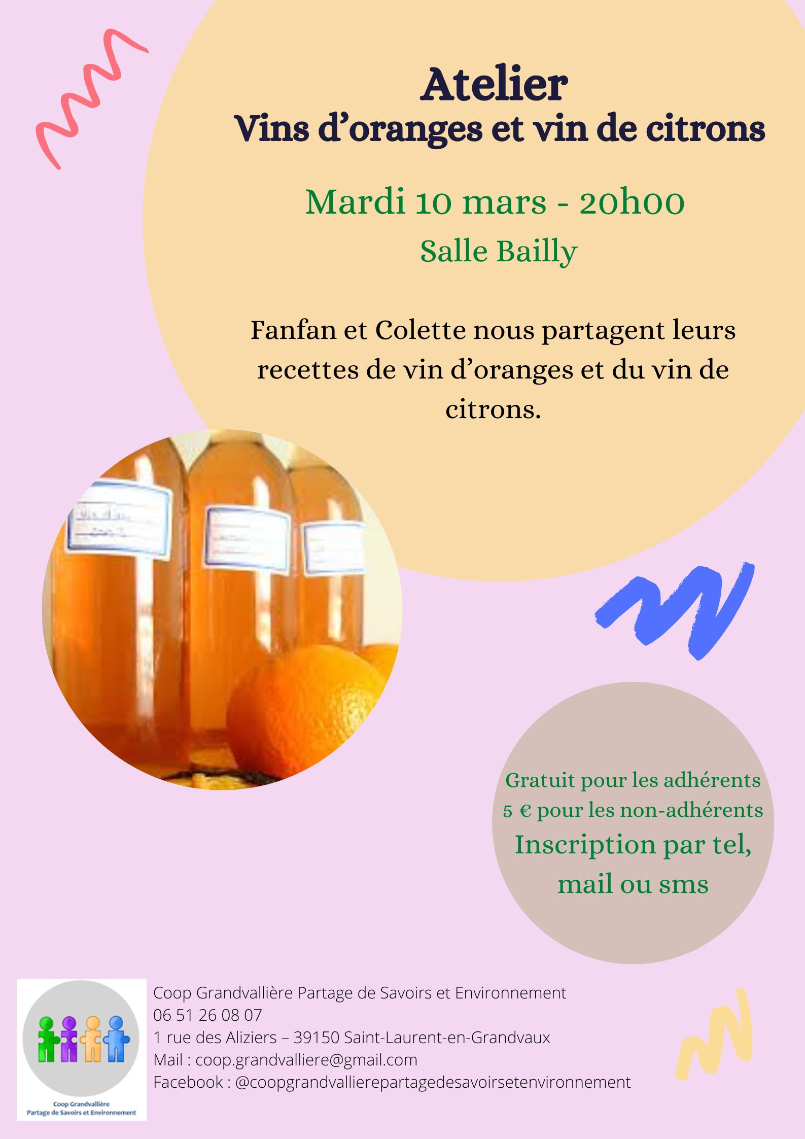 Atelier "Vin d'oranges et vin de citrons" mardi 10 mars à 20h.