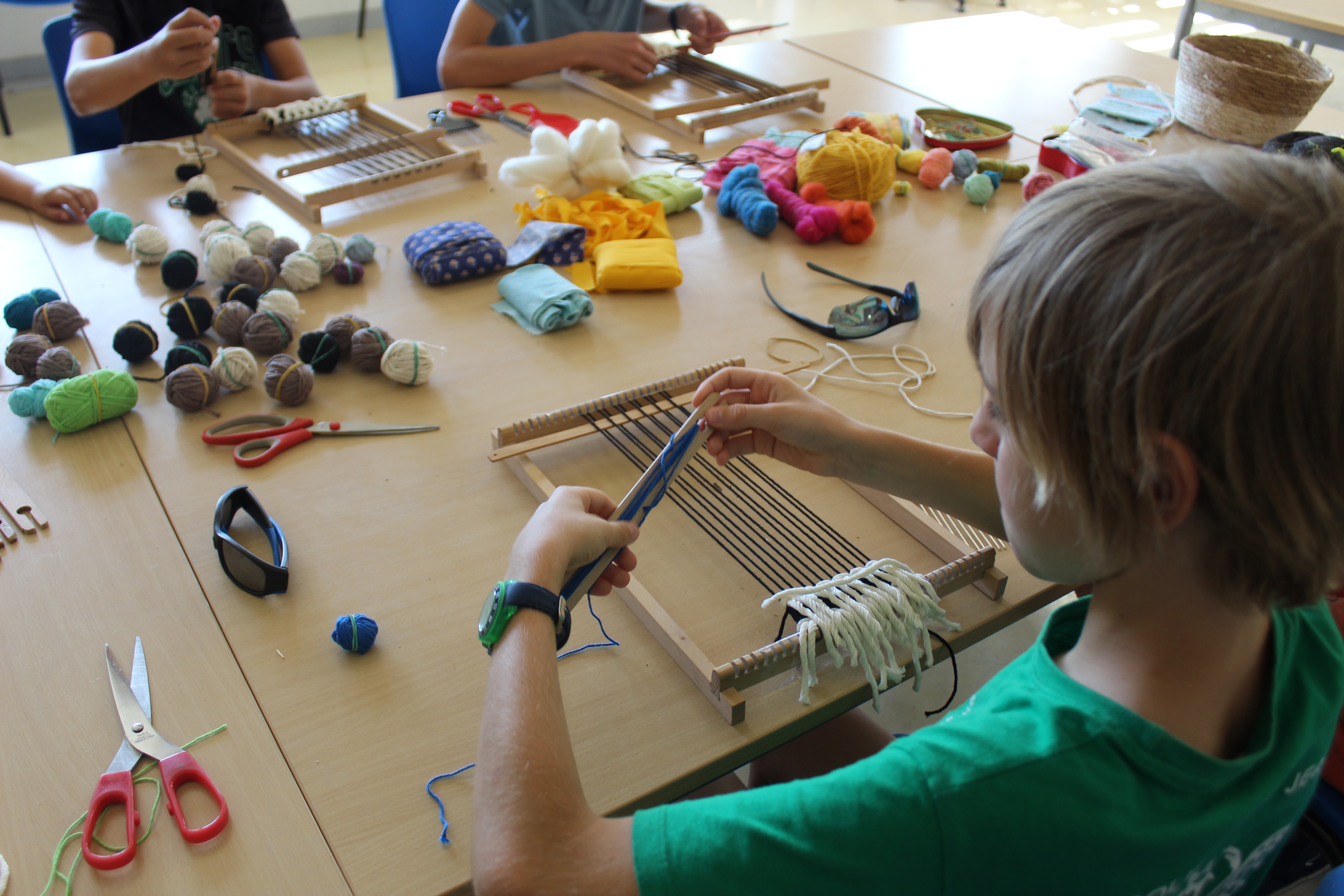 Les enfants découvriront comment utiliser une navette, à quoi sert le peigne africain et comment structurer leur tissage pour obtenir un rendu régulier et solide. Ils apprendront à travailler sur un métier-cadre et à monter eux-mêmes leur chaîne. Parmi un très grand choix de rubans, de couleurs et de cotons, ils pourront créer leur propre bracelet et terminer le tissage avec de petites tresses.