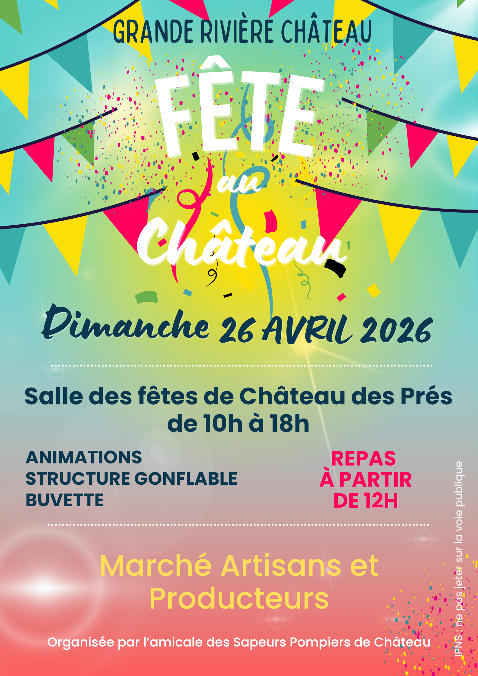 L'amicale des Sapeurs-pompiers de Château vous propose des REPAS sur place, à partir de midi.