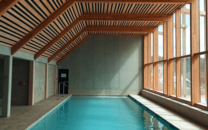 En bordure de forêt, se mêlent en douceur les activités de pleine nature à divers équipements: piscine, salle de fitness avec spa, sauna et piscine naturelle intérieure.