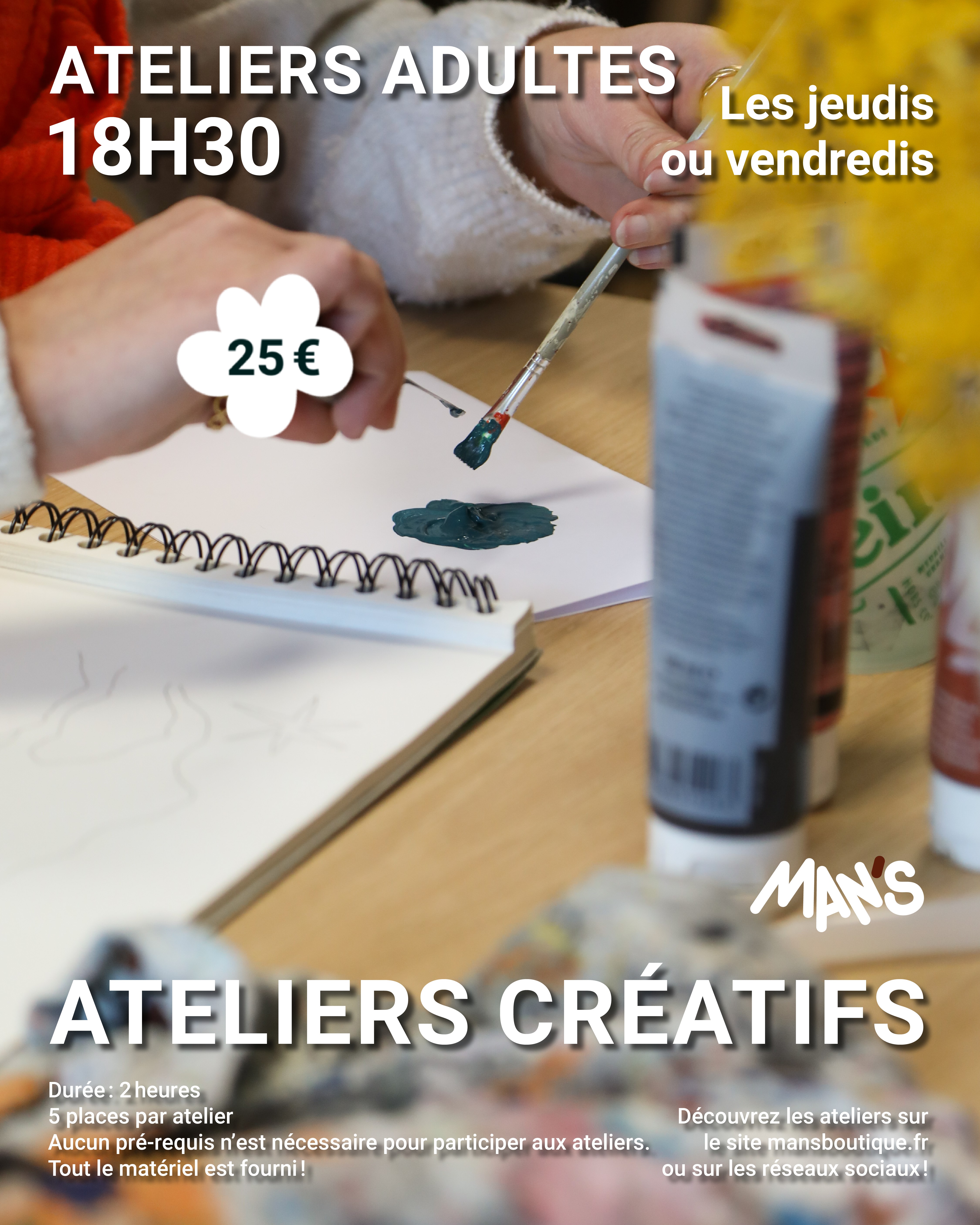 Manon, graphiste, illustratrice et gérante de la boutique, vous propose également deux fois par mois des ateliers créatifs pour adulte où le partage et la bonne humeur sont au rendez-vous !
