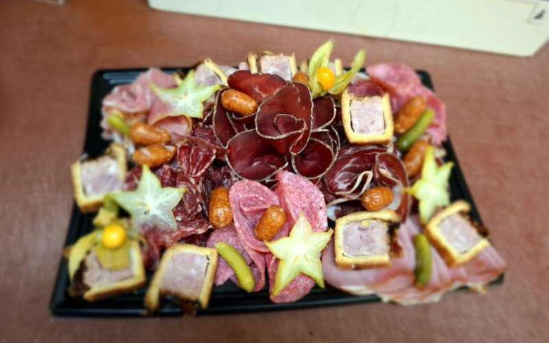 - Charcuteries Maison et Médaillées : Laissez-vous tenter par une large gamme de charcuteries préparées sur place dans le respect des recettes traditionnelles. Nos produits sont régulièrement récompensés, comme notre boudin noir, médaillé d'or (2019), ou notre pâté de tête, lauréat d'un Trophée européen. Goûtez également nos recettes emblématiques comme la terrine grand-mère ou les rillettes comtoises.