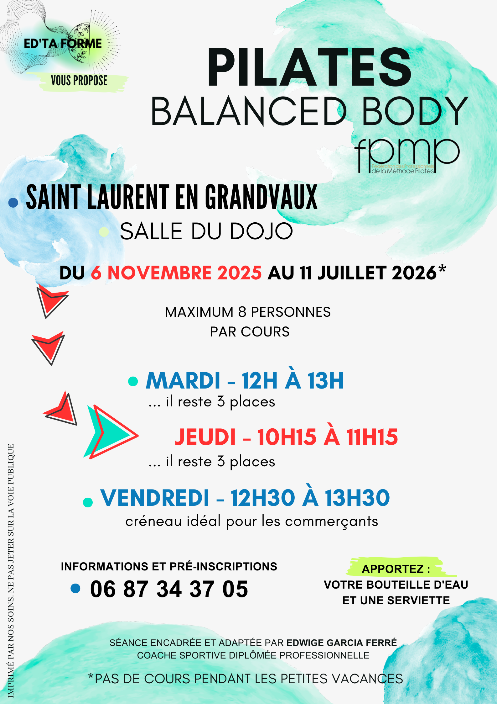 Sur inscription au 06 87 34 37 05 - Apportez votre bouteille d'eau et une serviette