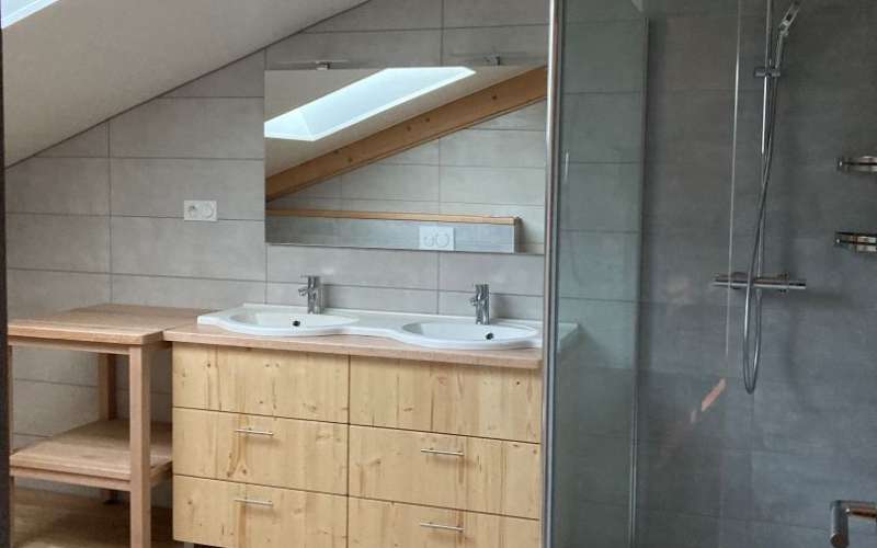 2 salles bain avec grande douche et une double vasque.