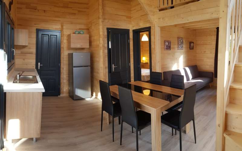Le Chalet duplex d'une superficie de 35m2 au sol et 17m2 de mezzanine ainsi qu'une terrasse couverte de 19m2.
