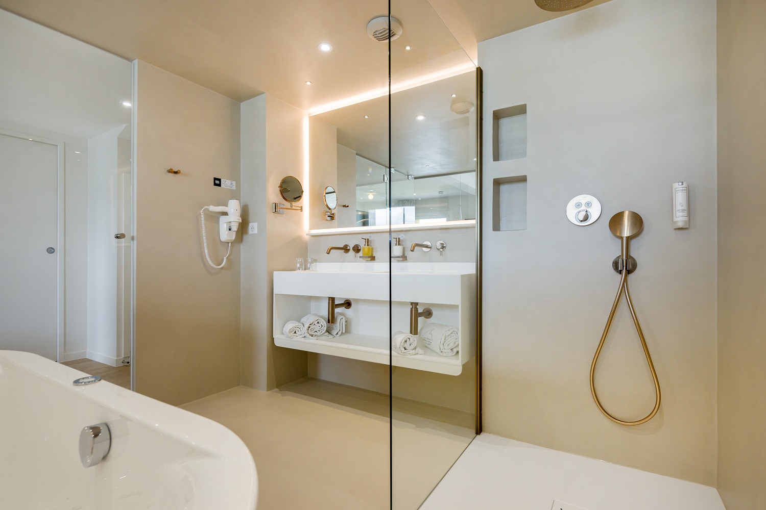 Les salles de bains modernes sont équipées de douche plein pied ou bain, sèche cheveux.