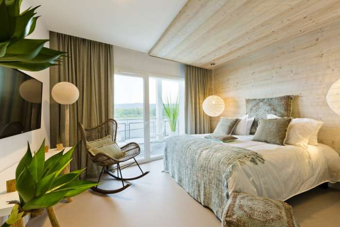 L'hôtel - restaurant propose 12 chambres avec balcon et vue sur le lac ; il dispose également de 2 ascenseurs pour les 3 étages.