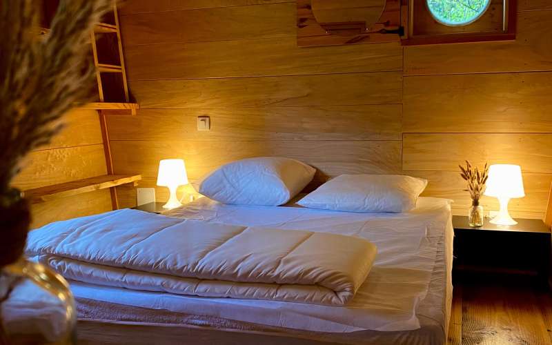 Notre hutte pour 2 personnes, entourés de paysages verdoyants, est adaptée à tous les types de campeurs, des aventuriers aux campeurs à la recherche d’un séjour tout confort (sanitaires collectifs et frigos partagés).