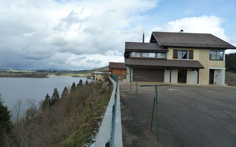 A l'extérieur : cour, terrain attenant non clos offrant une magnifique vue sur le lac de l'Abbaye, salon de jardin et barbecue.