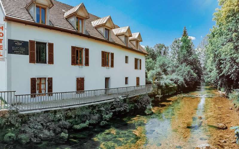 Aux portes du Parc Naturel du Haut-Jura, l'Auberge de la Rivière situé à Foncine le Haut, vous accueille dans un lieu calme et convivial au bord de la Saine.