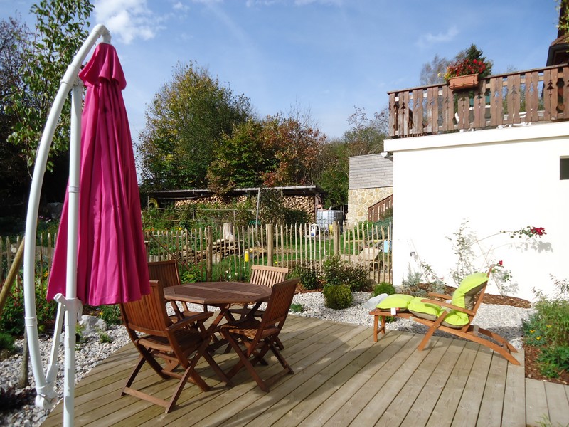 Terrasse aménagée offrant une magnifique vue sur la nature environnante.