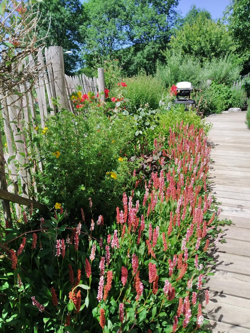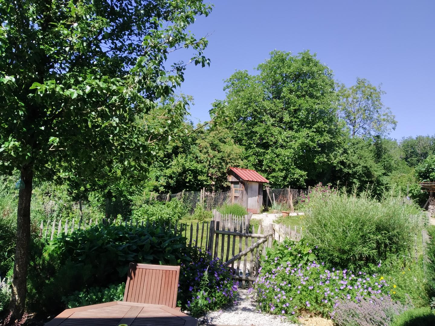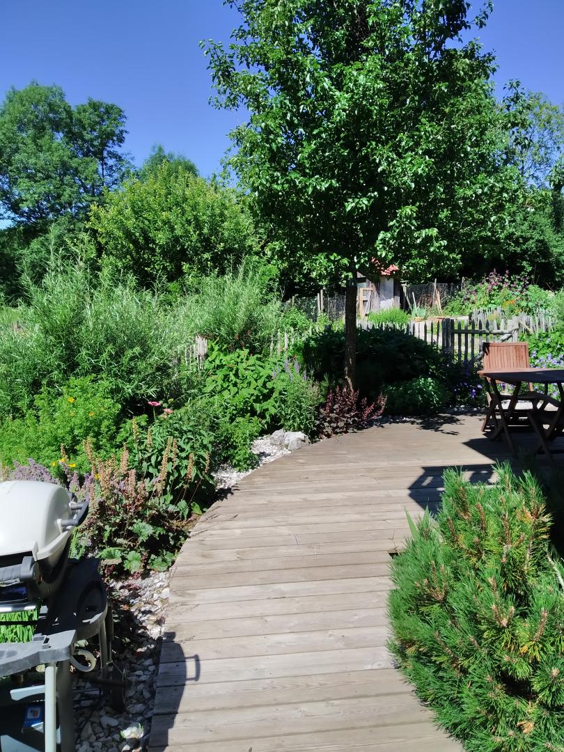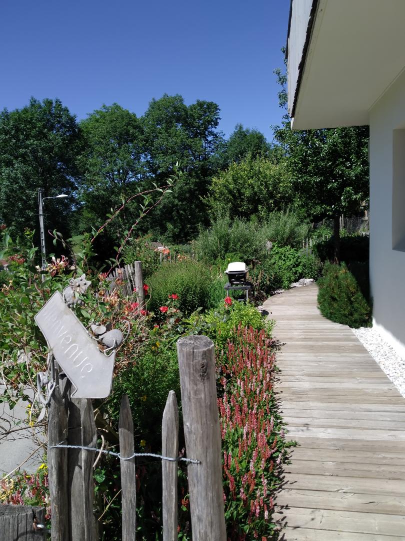 Salon de jardin, parasol, barbecue et chaises longues à disposition.