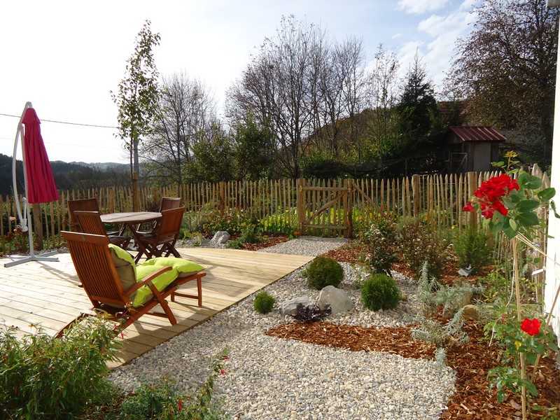 Terrasse aménagée offrant une magnifique vue sur la nature environnante.